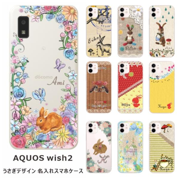 AQUOS Wish2 アクオスウィッシュ2 SH-51C SH-M20 らふら 名入れ スマホケース ウサギ