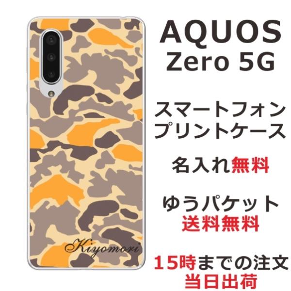 AQUOS ZERO5G Basic ケース SHG02 A002SH アクオスゼロ5Gベーシック カバー らふら 名入れ 迷彩 オレンジ
