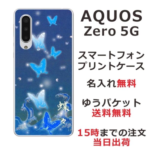 AQUOS ZERO5G Basic ケース SHG02 A002SH アクオスゼロ5Gベーシック カバー らふら 名入れ 和柄 蒼波光蝶