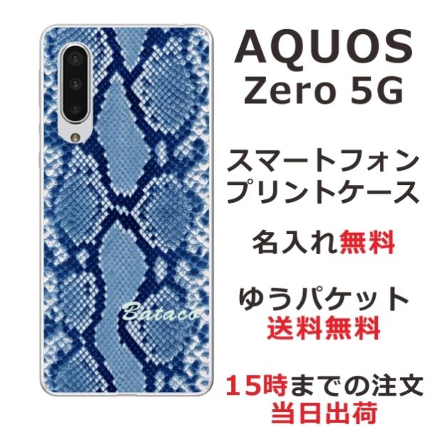 AQUOS ZERO5G Basic ケース SHG02 A002SH アクオスゼロ5Gベーシック カバー らふら 名入れ へび柄 ブルー
