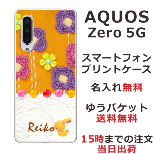 AQUOS ZERO5G Basic ケース SHG02 A002SH アクオスゼロ5Gベーシック カバー らふら 名入れ キルトフラワーオレンジ