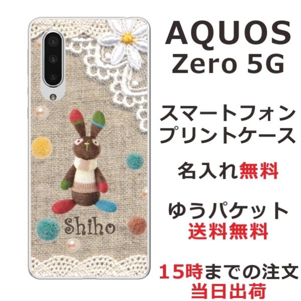 AQUOS ZERO5G Basic ケース SHG02 A002SH アクオスゼロ5Gベーシック カバー らふら 名入れ コットンレース風 うさぎ