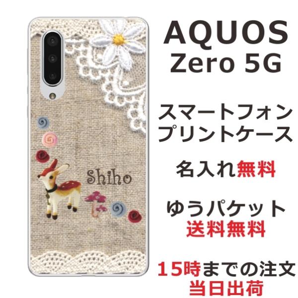 AQUOS ZERO5G Basic ケース SHG02 A002SH アクオスゼロ5Gベーシック カバー らふら 名入れ コットンレース風 バンビ