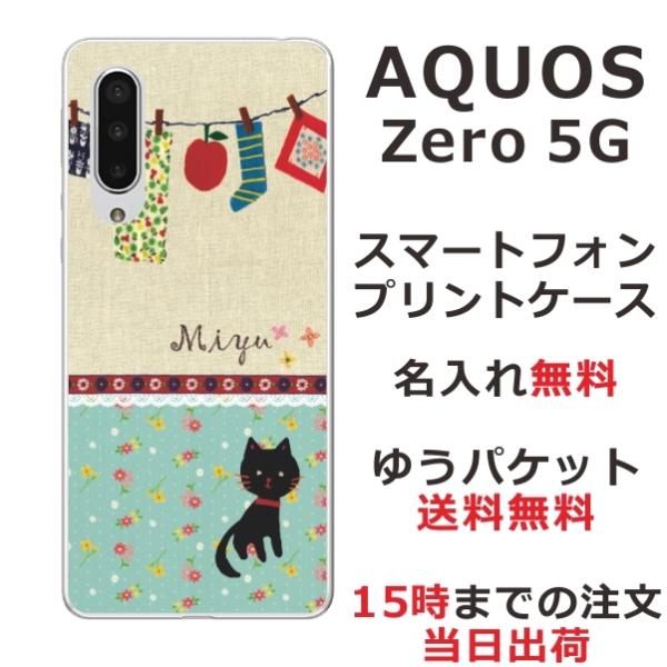 AQUOS ZERO5G Basic ケース SHG02 A002SH アクオスゼロ5Gベーシック カバー らふら 名入れ 黒猫 洗濯物