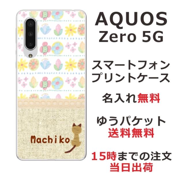 AQUOS ZERO5G Basic ケース SHG02 A002SH アクオスゼロ5Gベーシック カバー らふら 名入れ 北欧デザイン カラフル フラワー