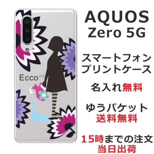 AQUOS ZERO5G Basic ケース SHG02 A002SH アクオスゼロ5Gベーシック カバー らふら 名入れ モダン花 少女