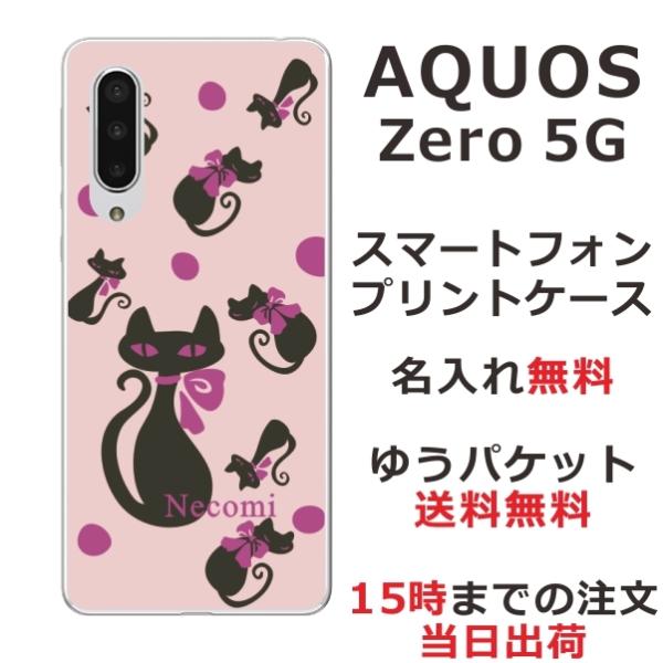 AQUOS ZERO5G Basic ケース SHG02 A002SH アクオスゼロ5Gベーシック カバー らふら 名入れ 和柄 和黒猫
