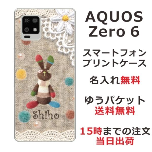 AQUOS Zero6 ケース SHG04 アクオスゼロ6 カバー らふら 名入れ コットンレース風 うさぎ
