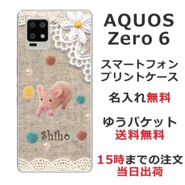 AQUOS Zero6 ケース SHG04 アクオスゼロ6 カバー らふら 名入れ コットンレース風 ブタ
