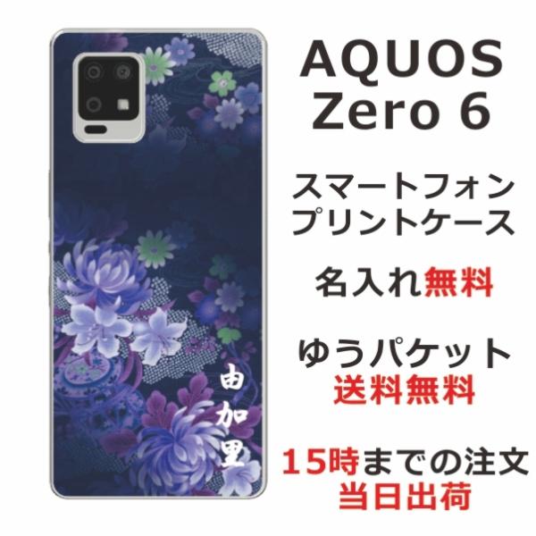 AQUOS Zero6 ケース SHG04 アクオスゼロ6 カバー らふら 名入れ 和柄 和花青紫グラデ