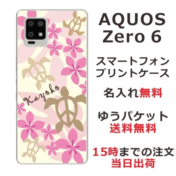 AQUOS Zero6 ケース SHG04 アクオスゼロ6 カバー らふら 名入れ ハワイアン ピンク ホヌ