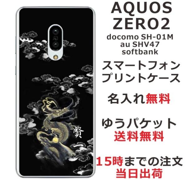 AQUOS Zero2 ケース SH-01M SHV47 906sh アクオスゼロ2 カバー らふら 名入れ 和柄 漆黒雲海龍