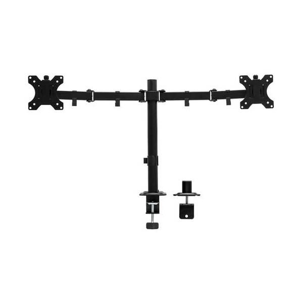 - 北海道・沖縄・離島へのお届けは別途送料がかかります。詳しくはこちら4軸タイプで細かい位置調節に対応したモニターアーム。●色:ブラック●外形寸法(幅)[mm]:712●外形寸法(奥)[mm]:114●外形寸法(高)[mm]:473●質量[kg]:約2.7●耐荷重[kg]:各アーム7●対応サイズ:〜27インチ●取付可能天板寸法:クランプ=15〜45mm、グロメット=15〜45mm●取り付け画面数:2画面●軸数:4軸●固定方式:クランプ式/グロメット式●規格:VESA規格(75×75、100×100mm)●材質:スチール、プラスチック/可動範囲:回転=360°(+180°/-180°)、パン左右=180°(+90°/-90°)、チルト=上下180°(+90°/-90°)