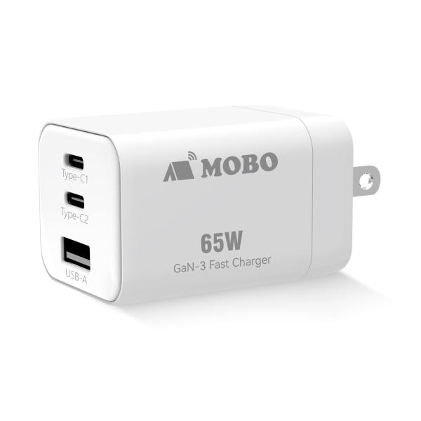 - 折りたたみ式プラグ搭載 コンパクトAC充電器 60W ・パワフルなのにコンパクト!最大3台の機器を同時に充電 ・高効率GaN3(窒化ガリウム)チップ搭載 ・約90gの軽量設計と使いやすいキューブデザイン ・PPSにも対応。機器に合わせた最適な給電 ・複数ポート使用時の自動出力配分 ・携帯に便利な折りたたみ式プラグ 2ポートの30Wはこちら 商品仕様 ブランド名 MOBO(モボ) 商品名 折りたたみ式プラグ搭載 コンパクトAC充電器 65W 色/質感 ホワイト/マット加工 型番(JAN) AM-PDMGAN65W-WH(4582353604167) 定格入力電圧 100-240V 50/60Hz 最大1.3A 定格出力 【USB-Cポート1およびポート2】 5V/3A、9V/3A、12V/3A、15V/3A、20V/3.25A(最大65W)、PPS:5V-20V/3A(最大60W) 【USB-Aポート】 5V/3A、9V/2A、12V/1.5A(最大18W) 定格出力(複数ポート使用時) (1)C1+C2:45W+18W (2)C1+A:45W+18W (3)C2+A:7.5W+7.5W (4)C1+C2+A:45W+7.5W+7.5W ポート数 USB-C x2ポート、USB-A x1ポート 外形寸法 W55 x D36 x H32 mm(電源プラグ含まず) 重量 約90 g パッケージ寸法 W110 x D90 x H39 mm(タグ含まず) 重量(パッケージ含む) 約116 g 対応機器 【USB-Cポートからの充電時】 USB-Cポートを搭載したパソコン、タブレット、スマートフォンなど 【USB-Aポートからの充電時】 USB充電に対応したタブレット、スマートフォン、ワイヤレスイヤホンなど ※USB-Aポートからノートパソコンへの充電はできません。 その他 電気用品安全法(PSE)技術基準適合品 製造国 中国 保証期間 ご購入日より1年
