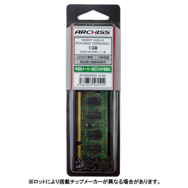1GB ノート用メモリ ARCHISS AS-800D2N-1G-MJ 200pin用 DDR2 SDRAM S.O.DIMM