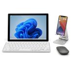- 【1. スタンダードなミニキーボード 】INTRO Mini BTは、テンキーのない小型のキーボードです。テンキーが不要な方に最適なミニサイズで、横幅293mmと場所を取らず、デスク作業の邪魔になりません。Bluetooth(R)とUSBの無線・有線の両対応で、パソコン・タブレット・iPhoneなど様々な機器に接続できるオールラウンダーです。【2. パンタグラフ構造】INTRO Mini BTのキースイッチ構造は、ノートパソコンと同じパンタグラフタイプです。軽快な打鍵感で、長時間の入力作業でも指が疲れにくいです。薄さを保ちつつ、約2mmの浅すぎないキーストローク(キーを押し込み、底打ちするまでの長さ)で、軽快でありながらゆとりのあるタイピングが可能です。【3. 接続先OSに合わせて切り替えできる “ホットキー・修飾キー最適化”機能】INTRO Mini BTは、標準的な日本語JIS配列キーボードです。複数のデバイスへ接続し共用することを想定し、Windows OS、iOS(iPadOS)、macOSそれぞれに適した、修飾キー・ホットキー・マルチメディアキーの設定をあらかじめ用意しています。キーボードをパソコンやタブレットにUSB接続したのち、簡単なキー操作で、接続先デバイスのOSに合わせた最適化ができます。【4. 2台のBluetooth(R)機器の切替が可能、USB有線接続にも対応】Bluetooth(R)接続した2台の機器を、簡単に切り替えできるマルチペアリングに対応。USB有線接続も可能で、充電が切れても有線接続で使えます。パソコンを有線接続、iPhoneやタブレットをBluetooth(R)接続し、最大3台の機器を切り替えて使うことも可能です。【5. 有線接続・充電兼用のUSB-Cポートと電源スイッチ、傾斜をつけるチルトスタンド】有線接続・充電兼用のUSB-Cポートを搭載。着脱できるケーブルは、保管・持ち運びの際に邪魔になりません。USB-Cポートの横には、内蔵バッテリーの電源スイッチ(ON/OFF)を配置。Bluetooth接続をしない時は、OFFにして電池の消耗を防止できます。薄型タイプでも打ちやすい、チルトスタンドを搭載。奥のキーが打ちづらい場合に、チルトスタンドで傾斜をつけ、キーを打ちやすくします。