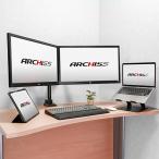 - デュアルモニター用アーム。前後・左右・上下あらゆる方向に対応。分離式で稼働がスムーズ。「Monitor Arm Basic ガススプリング式 デュアル液晶モニターアーム」■ARCHISS Monitor Arm Basic「ガススプリング式 デュアル液晶モニターアーム」前後・左右・上下の移動に対応。また、モニターのチルト・パン・ローテーションに対応しているので、あらゆる角度にモニターを調節できます。クランプ方式・グロメット方式の両対応で、様々なデスクに取り付け可能です。■デュアルモニター対応で、デスクをより広く2つのモニターの脚がなくなるため、デスクスペースが広々。対応のモニターサイズは最大32インチ。モニターをデスクに置くと、脚の部分にかなりのスペースを取られます。モニターアームを使って、モニター脚部のデッドスペースを有効活用。デスク作業や、掃除も簡単に行えます。■分離式で組み立て簡単・スムーズな可動アーム部品が分割されているので、組み立てが簡単。関節部がネジ等で接続されておらず、可動がスムーズ。取り付け後にモニターをよく動かして使う方におすすめです。(アームが外れないようにするためのネジ止めはあります。)※仕様上、関節部分を締めて可動の固さを調節することはできません。■前後・左右・上下、あらゆる方向に対応アーム部分を支柱に固定するタイプなので、前後・左右・上下、あらゆる方向に対応可能です。また、モニターを使用しない時は水平方向に折りたたんで、デスクの作業領域を確保できます。※モニターの大きさによって調整の範囲は異なります。■モニターの縦方向・角度の調節が可能取付けたモニターを360°回転できるので、縦方向など、好きな位置にして使用できます。また、左右パン方向に180°、上下チルト方向に上90°下45°まで角度をつけられるので、モニターを様々な角度に調節できます。※モニターの大きさによって調整の範囲は異なります。■クランプ・グロメットの2つの固定方式に対応天板を挟み込むクランプ方式と、穴を利用して挟むグロメット方式の、2つの固定方式に対応しています。様々なタイプのデスクに取り付けが可能です。■上から設置できるクランプクランプは上から留められるタイプのため、設置も簡単。机の下に潜り込む必要はありません。■モニターの着脱が簡単なセパレート仕様モニターとアームの接続部分がセパレートできる構造なので、モニターを簡単に着脱できます。■ケーブルの取り回しに便利なケーブルガイドケーブルガイドにケーブルを通すことで、アームとケーブルが合わせて動くので、モニターの取り回しに便利です。また、アームの位置や動作の調節を行うための、工具を収納するためのホルダーも付いています。■取り付けるモニターに関する注意事項本製品に取り付けるモニターは、VESAの位置がモニターの中央、または、バランスが取れる位置にあるモニターを取り付けてください。重量が偏ったモニターを取り付けた場合、使用時に傾く可能性があります。※下部に重量が偏ったモニターの場合、通常使用時は問題ありませんが縦ローテーション時に傾く可能性があります。