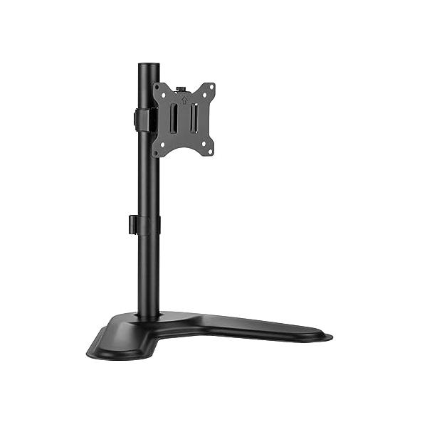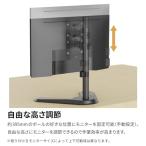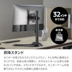 - 高さ調節が可能なモニタースタンドです。モニターのチルト・パン・ローテーションに対応しているので、あらゆる角度にモニターを調節できます。デスクにそのまま設置できるスタンドタイプです。 昇降スタンドモニターの高さをもう少しだけ上げたい、そんな時に最適なスタンドです。自由な高さ調節と、大きなモニターにも使える最大32インチ対応。スタンドタイプなので、モニターアームが設置できないデスクにも簡単に設置できます。自由な高さ調節約395mmのポールの好きな位置にモニターを固定可能(手動設定)。自由な高さにモニターを調節できるので作業効率が高まります。※取り付けるモニターサイズによって上下可動域は異なります。設置が簡単なスタンドタイプスタンドタイプなので、デスクへの取り付けが不要で設置が簡単です。モニターの移動が多かったり、クランプの固定場所が無いデスクに便利です。モニターの縦方向・角度の調節が可能取り付けたモニターを360°回転できるので、縦方向での使用も可能です。また、左右パン方向に180°、上下チルト方向に90°までの角度をつけられるので、モニターを様々な角度に調節できます。※モニターの大きさによって調節の範囲は異なります。モニターの着脱が簡単なセパレート仕様モニターとアームの接続部分がセパレートできる構造なので、モニターを簡単に着脱できます。ケーブルの取り回しに便利なケーブルガイド付アームを動かす時に、ケーブルが絡まないケーブルガイド付き。アームの位置や動作の調節を行うための工具を収納するためのホルダーも付属しています。■対応規格:VESA75x75mm/100x100mm ※1■対応モニターサイズ:最大32インチまで■耐荷重:最大7kgまで■可動範囲:回転:360°(+180°/-180°)、パン(左右):180°(+90°/-90°)、チルト(上下):90°(+45°/-45°)■本体サイズ:約414x306x460mm(WxDxH)■重量:約2.4kg■素材:スチール/プラスチック■製品内容:スタンドポール、スタンドベース、VESA金具(75x75mm/100x100mm)、六角レンチ(4mm/6mm)、VESA固定金具、VESA金具固定用ネジ、スタンド固定ネジx2個、ケーブルガイド、M4-12mmネジx4個、M4-16mmネジx4個、M5-12mmネジx4個、M5-16mmネジx4個、ワッシャー(小)x4個、ワッシャー(大)x4個、取扱説明書兼保証書■製造国:中国■保証期間:ご購入日より1年間(保証書必要)
