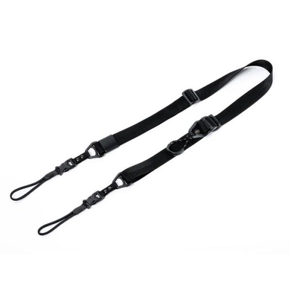 - 種別:ストラップ NOTEアウトドア・サイクリング・旅での撮影がよりスムーズに。長さ調整がワンアクションでできるカメラストラップ、『イージースライダー』リニューアル。 今回のリニューアルでは、ターゲットシーンとなる「アウトドア(トレッキング)・サイクリング・旅」といったアクティビティをイメージさせるようなデザインに仕上げると共に、それらのシーンで素早い写真撮影のストレスを軽減する機能を盛り込みました。ナイロンテープやプラスチックパーツなどの変更や、指が簡単に掛けられるリングプラーを設けることで、当シリーズの特徴である伸縮のアクションを、さらにスムーズにできるようリニューアルデザインしています。取り付け部分によるラインナップは増やさずに、2種類のアタッチメントと三角カンを付属し、その組み合わせでアイレットタイプ、テープタイプ、ストラップタイプといった、あらゆる接続の方法に対応します(一眼レフ、ミラーレス一眼、コンパクトカメラはもちろん、各種フィルムカメラなど様々なカメラに装着)。アクティビティや行動スタイルによって使用するカメラを「一眼レフからコンパクトカメラ」に変更したい、けれどカメラストラップは使い慣れた同じものを使用したいといった方でも、これ1つで対応することが可能です。ストラップをファッションの一部とするだけでなく、アクティビティのための『ギア』としての実用面も重視した、新たなカメラストラップです。【主な特長】・長さ調整がより容易にできるよう、指が簡単に掛けられる『リングプラー』を新たに装着、冬場などでグローブをしたままでも掴みやすい。本体テープ(ストラップ)がループ構造のため縮めた分が余らず邪魔にならない。・上質なイタリアンレザー製のサル革を装備し、ブランドロゴはエンボス加工でブラックアウトしたデザインに。プラスチックパーツは「Duraflex」社製に統一、よりコンパクトになるように構成をリニューアル。・2種類のアタッチメント(パラコード、松葉紐タイプ)と三角カンの組み合わせで、アイレット、テープ、ストラップタイプ、いずれの接続方式に対応。デジタル一眼レフ、ミラーレス一眼、コンパクトカメラはもちろん、各種フィルムカメラなどにも対応。・一眼レフ、ミラーレス一眼などに対応。カメラの取付部によってパラコードを直接装着する。・コンパクトデジタルカメラや、フィルムカメラなど、ストラップ取付部が細いタイプのカメラには松葉紐タイプにて対応。・伸縮(最短720mm、最長1150mm)をワンアクションで行えるため、どんなときでもシャッターチャンスを逃しません。ループ状の構造で縮めた分のテープ(ストラップ)が余らず邪魔にならない点も、撮影時においてストレスフリーが実現するポイントです。・トレッキングなどの移動中はストラップを縮めることで、カメラが上下・左右にスイングしてしまうことを防ぎます。リニューアルした「アタッチメント式イージースライダー」は、ギア寄りのデザインのため、アウトドアアイテムとの組み合わせも違和感ありません。・撮りたいものを見つけたら、自転車を止めて素早く撮る、といったアクションがスムーズに実現します。移動中はメッセンジャーバッグのように背中側にまわしたり、腕の下部付近にカメラを動かしてストラップを短くすれば、走行を妨げない位置にカメラを固定することが可能です。・付属のアタッチメントを変更することで、様々なカメラに装着することが可能です。持っていくカメラを、旅の行程やスタイルなどによって変更しても、ストラップは同じものを使用することが可能です。【主な仕様】ストラップ長さ:最短720mm~最長1150mmストラップ幅:24mm接続用テープ幅:パラコード3mm径/松葉紐1mm径素材:ナイロン(本体テープ)、ナイロン(接続部)、イタリアンレザー(サル革)重量:55g付属:2種のアタッチメント(パラコード、松葉紐) 三角カン生産国:中国