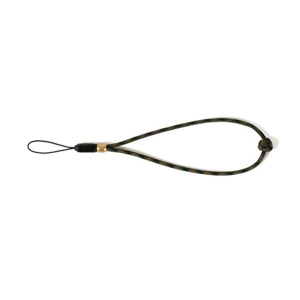 - 種別:アストラップ NOTE人気のパラコードストラップにカラフルでポップなマルチハンドストラップが登場カジュアルに使えるハンドストラップは、カメラ以外の多くのアイテムにも使える汎用性の高いハンドストラップ。コンパクトカメラをはじめ、携帯やスマートフォン、アウトドア用のマルチツールやキーホルダーとしてもオススメです。パラコードストラップシリーズに共通した、セルティックボタンノット結びをストラップエンドにあしらいました。このユニークな結び目はデザイン的な魅力に加えて、バッグの中から細身のストラップを掴みやすくする役目も担っています。もう一方のデザイン的な特徴となっている、ストラップのループサイズを調整するストッパーにはブランドオリジナルの真鍮無垢削出しのロゴ入りストッパーを採用、ポップさの中にユーザーのこだわりと高級感をしっかりと表現できるアイテムに仕上がっています。 さらに、すべてのストラップは使用する環境や頻度により、個体それぞれに異なったエイジング変化を楽しめ、カラーバリエーションだけではなく、一つ一つの個体がユニークなプロダクトへと進化します。【主な仕様】サイズ:L235m素材:本体:パラシュートコード(ナイロン)/接続部:ナイロン/金具:真鍮重量:7gカラー:カモフラージュ生産国:日本