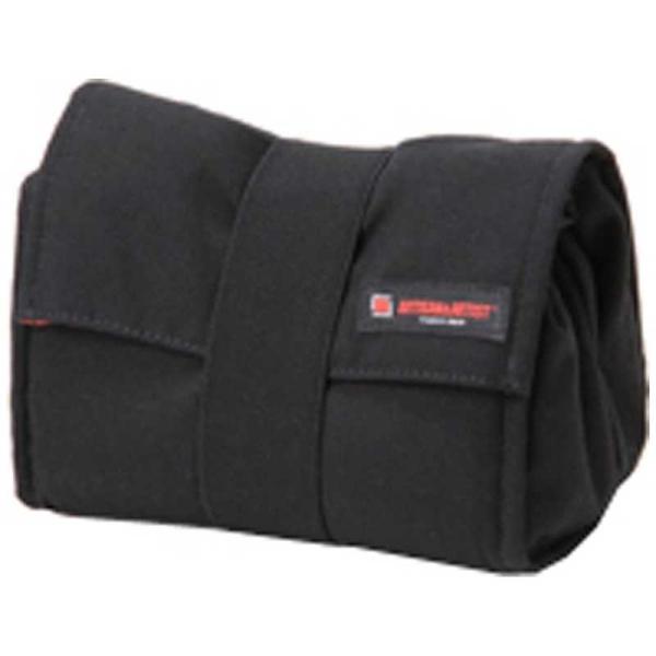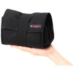 - コロンとした三角フォルムが特徴的なカメラポーチ 本体にゴムループを巻きつけて閉じるシンプルなデザイン カメラだけでなく充電器やコード類の持ち歩きにもピッタリ ペーパーバッグのような形状、斜めにカットされた開口部により、出し入れしやすい構造 口折れ式なので収納量に応じて自由に高さ調節可能 手持ちのアイテムに合わせて選べる2サイズ展開(Lサイズ) 圧縮ウレタンのクッション芯を入れた手触りの良いコットン素材を採用 品番 ACAM-76 材質 表:綿 裏:ポリエステル サイズ W175×H130×D120mm 重量 102g カラー ブラック、レッド 生産国 Made in Japan (日本製) 予告無く仕様が変更になることがございます。精密機器の保護に特化したカメラのためのバッグ・イン・ポーチ カメラバッグのインナーケースを進化させた、コンパクトでガード力の高いシンプルなカメラポーチです。重さはわずか102グラム。カラーはブラック、レッドの2色展開。 2種類のサイズ展開のうち、Lサイズである本製品はレンズを装着したM型Leica、Qシリーズ、小型のミラーレスカメラの収納に適したサイズです。 ペーパーバッグのようなシンプルなつくり まるでペーパーバッグのように、物が出し入れしやすいデザイン。開口部が斜めにカットされていて、内部の可視性を高めているのがポイントです。 ゴムバンドを巻き付けて中身をしっかりガード 精密機器を傷付けないよう、ファスナーは使用していません。 ポーチ上部を折り畳み、ゴムストラップを本体に巻くことで収納完了。 収納物の大きさに合わせて固定できるのが魅力です。 機材を守るのに最適な素材 胴体部分には収納物を守る圧縮ウレタンのクッション芯が入っています。表地には肌触りの良いコットン、裏地には摩耗やスレが起こりにくいタフタ地を採用。 生地の目が細かくしなやかなので、カメラをしっかり保護できるのが特長です。
