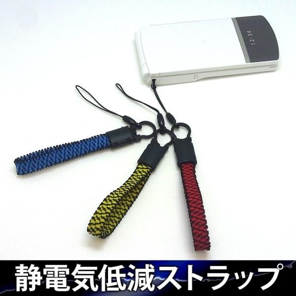 静電気低減携帯ストラップ (選べるカラー 青or赤or黄) 携帯電話アクセサリー ストラップ SS-01