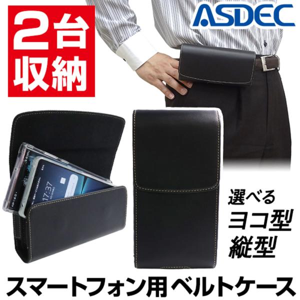 2台収納 スマホ ベルトケース ツインポケット フリーサイズホルダー 横型 縦型 ASDEC SH-FCT2V SH-FCT2H スマホケース ベルト ベルトクリップ 合皮