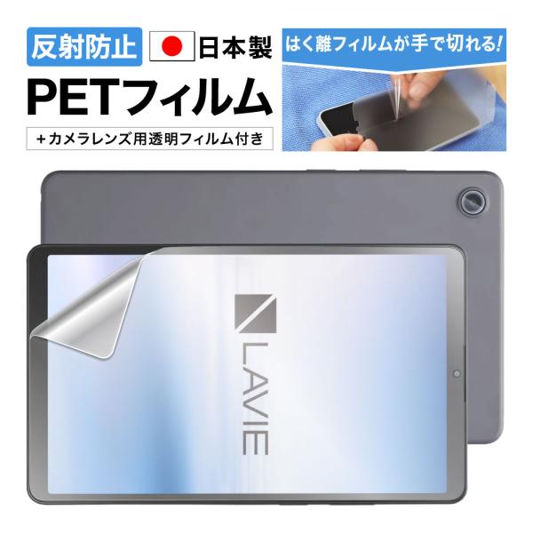- ■反射防止 ノングレア画面保護フィルム3 対応端末 ●LAVIE Tab T8 (8.7型 2025年夏モデル) ・NEC LAVIE Tab T8 T0855/KAS (PC-T0855KAS) 店頭モデル ・NEC LAVIE Tab T8 TAB08/H05 (PC-TAB08H05) Web限定モデル 特長●ガラスフィルム以外を探している方に最適!非ガラスフィルムのPETフィルムガラス以外の保護フィルムをお探しの方にもおすすめの、“非ガラス”タイプのフィルムです。ガラスじゃない素材なので、ガラスフィルム特有の厚みや割れの心配がありません。素材は、柔らかいPET材(ポリエチレンテレフタレート)を使用しています。 ガラスフィルムじゃないため、軽くて割れにくく、普段使いにぴったりのフィルムです。 ●はく離フィルムについて 本品のはく離フィルム(離型フィルム)は、手でカットすることができます。 貼り付けの際に短辺左右の切れ込みからはく離フィルムの一部分をカットすることで位置決めがしやすく、 貼りやすくなりました。 ●フィルムの貼り付け方 【1】はく離フィルムの短辺部にある切れ込み部分から、はく離フィルムをカットして画面に貼り付けができます。 【2】先に貼り付けた部分が剥がれてしまわないように指で押さえながら、残りのはく離フィルムを全て剥がし、ゆっくりと貼り付けることで、簡単・綺麗に貼り付けができます。 詳しくは「フィルムの貼り付け方」説明書をご参照のうえ、お貼り付けください。 セット内容 ・メインディスプレイ用フィルム 1シート ・アウトカメラ用保護フィルム 1シート ・クリーナーセット ・「フィルムの貼り付け方」説明書 1枚 型番 NGB-T0855K-Z JAN 4997604031256 備考 Made in Japan 日本製 注意事項 ※2,500円未満は代金引換不可 ※1日程度で気泡が消失しない場合、指の腹で気泡を押しつぶす様に上下左右に優しく擦ると消失する場合があります。 大きめのホコリがはさまって気泡ができている場合は、セロハンテープなどでホコリを取り除いてください。 ※メインディスプレイ用以外はノングレア液晶保護フィルム3ではありません。 ※記載されている会社名、製品名、ロゴなどは一般に各社の商標または登録商標です。 ※フィルムの形状等の仕様については、品質向上のため予告なく変更する事があります。 ※フィルムのイラストはイメージです。 ※比較画像は全て実写です。 お役立ちコンテンツ 検索キーワード:T0855 T0855K T0855KAS T0855/KAS TAB08/H05 LAVIE Tab T8 LAVIETabT8TabT8 8.7インチ 2025 2025年 8.7型 2025年夏モデル ラビエ ラヴィ ラビ NEC エヌイーシー アンドロイド アンドロイドタブ アンドロイドタブレット