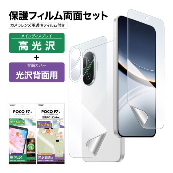 POCO F7 表裏 両面 保護フィルム セット (表面光沢1枚+裏面光沢 1枚+カメラレンズ用フィルム) フィルム 日本製 ASDEC アスデック ASH-MIPF7FBF-Z