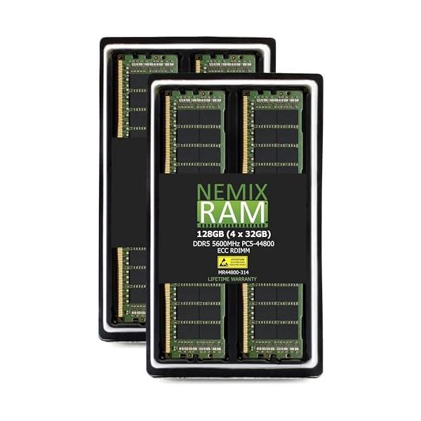 【並行輸入品】 128GB (4X32GB) DDR5-5600MHz ECC RDIMM ASRock TRX50対応 1Rx4 CL46 288ピン [製品生涯保証付き]
