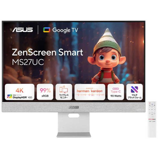- 【返品種別A】□「返品種別」について詳しくはこちら□「おひとり様1点まで」2024年12月 発売メーカー保証期間 3年【ご購入前に必ずご確認下さい】■本機は、設置不可の商品です。玄関先までのお届けとなります。■離島、山間部及び一部の遠隔地はご注文をお受けできません。■インターネット・Wi-Fiの設定は、お客様ご自身で行っていただくか、別途追加料金が発生する場合がございます。■ネット動画アプリのご利用にはインターネット環境が必要です。■本機はテレビチューナー(地上波/BS/CS)を搭載していません。■本機は家電リサイクル対象外商品です。お持ちのテレビのリサイクルについては、お近くの家電量販店または自治体にご相談ください。■ご注文については、お1人様1台までのご注文でお願いします。複数台のご購入はご遠慮ください。■転売目的や、同一住所で名前を変えてのご注文など、同一と思われるお客様より複数のご注文をいただいた場合、全てのご注文をお取り消しさせていただく場合がございますのでご了承ください。【ご購入後のお問い合わせにつきまして 】本製品に関する技術的なご質問・初期不良・修理等につきましては「ASUSサポート」へお問い合わせください。美しく進化する未来のワークスペースZenScreenスマートモニターは、ワークスペースの未来を象徴するもので、日常の状況に合わせて簡単にカスタマイズして変化していきます。このモニターによってPCを使わずに直接ディスプレイ上で操作でき、Google TVとGoogle Playストアの10000以上のアプリを使って、見たいものや遊びたいものを楽しむことができます。◆人気プラットフォームGoogle TVにより、すべてのストリーミングコンテンツが1つの画面にまとめられています。そのため、複数のアプリを切り替えることなくお気に入りのコンテンツをお楽しみいただけます。◆4K解像度4K UHD解像度と99%のSRGBによって、鮮やかな色彩が実現され、写真、ビデオ、映像が生き生きと表現されます。◆ユーザーインターフェースと操作性USB Type-C:高速データ転送と電源供給(90Wまで対応)HDMI:家庭用ゲーム機など、幅広いデバイスとの互換性DisplayPort:高解像度映像と音声をサポートする接続規格USBハブ×2:複数のUSBデバイス(キーボードなど)を接続するためのポート◆マウスとキーボードで簡単にマルチタスクを実現【マルチコントロール】マウスとキーボード1つで複数のデバイスを操作し、マルチタスクを加速します。【マルチビュー】画面を2つのセクションに分割し、異なるソースからのコンテンツを同時に表示および操作できます。【ワイヤレスモニター】ASUS ZenScreenスマートモニターは、MiracastやChromecastを通じてPCやスマートフォンなど複数のデバイスとワイヤレス接続が可能です。※マウス・キーボードは別売です。◆ライブストリームを複数のプラットフォームに同時配信ZenScreenスマートモニターに統合されたマルチプラットフォームライブストリーミングアプリを使用すると、YouTube、Facebook、Twich、Streamなどの複数のオンラインストリーミングサイトに同時に配信できます。また、カスタムRTMP機能を使用して、Tiktok、Amazon Live、その他のプラットフォームにもストリーミングできます。◆harman/kardon 認証スピーカーharman/kardon認証のデュアル5Wフロントスピーカー搭載で音がより力強くなり、視聴体験を次のレベルへと引き上げます。■ 仕 様 ■モニターサイズ:27インチ解像度:3840×2160視野角:178°/ 178°(CR≧10、H/V)輝度:400cd/m2(HDR、Peak)、350cd/m2(Typ.)OS:Android 11I/O ポート:・USB Type-C×1(DP Alt Mode)・HDMI(v2.0)×1・DisplayPort 1.4×1・USBハブ:USB Type-A(2.0)×2・イヤホンジャック:○上下角度調節(チルト):上18°〜下5°高さ調節:0〜100mmVESAマウント:100×100mm消費電力:・消費電力:30W以下・待機時:0.5W以下本体サイズ(スタンド含む)(約):幅61.35×奥行17.0×高さ50.91cm本体重量(スタンド含む)(約):6.0kg付属品:・HDMIケーブル・電源コード・USB C to Cケーブル・リモコン・単4形乾電池×2・クイックスタートガイド・保証書[MS27UC00]ASUS(エイスース)テレビ/レコーダー>テレビ>チューナーレステレビ