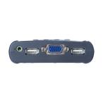 - 4ポートUSB KVMスイッチ 【CS64US】 4ポートUSB KVMスイッチ CS64USは、1組のUSBコンソール(キーボード、モニター、マウス)でPC4台を切り替えて操作できるケーブルKVMスイッチです。 本体のマウスポートにはUSBハブを接続することができ、 このUSBハブに接続されたUSBデバイスは製品に接続されているPC間で共有することができます。 ビデオダイナシンク機能 さらに、ビデオダイナシンク機能(ディスプレイエミュレーション)を搭載し、製品内部にコンソールモニターのEDID情報を格納することができるため、 選択されていないポートのPCが起動した場合でも最適な解像度で表示することができます。 ポート選択はキーボードを使ったホットキーで操作が簡単。 Windows、Mac、Sun、LinuxのマルチOSにも対応。コンソールの集約を実現すると同時に、高い操作環境をもたらします。 ・1コンソール(USB)から4台のUSBインターフェース対応のコンピューターの操作が可能 ・USB2.0対応のマウスポートにUSBハブやUSBデバイスを接続することが可能 ・ポートの切替にはホットキーを使用 ・OSやキーボード言語はホットキーでの選択が可能 ・オーディオ対応 ・マルチプラットフォーム対応 - Windows、Linux、Mac、Sun ・ケーブル一体型のコンパクトなデザイン - ケーブル長 0.9m ・VGA解像度 - 最大2,048×1,536、DDC2B準拠 ・ビデオダイナシンク(ディスプレイエミュレーション) - コンソールモニターのEDIDを保存し、解像度を最適化 ・多機能マウス対応 ・Sun/Macキーボードエミュレーション対応 * ・オートスキャンモード - 特定のコンピュータを一定の時間間隔で自動的に切替表示 ・バスパワー対応 ・* 1.PC/ATキーボードでもキーの組み合わせでSun/Macキーボードの特殊キー入力が可能です。 ・* 2.Sun/Mac用キーボードも使用可能です。 機能 CS64US 機能 CS64US コンピューター接続数 4 コンソール接続数 1 コンピューター側対応インターフェース キーボード USB マウス コンソール側対応インターフェース キーボード USB マウス ポート選択方法 ホットキー コンピューター側コネクタ キーボード USBタイプAオス×4 マウス USBタイプAオス×4 モニタ D-sub15ピンオス×4 スピーカー ミニオーディオプラグ×4 コンソール側コネクタ キーボード USBタイプAメス×1 マウス USBタイプAメス×1 モニタ D-sub15ピンメス×1 スピーカー ミニオーディオジャック×1 LED ポート選択 グリーン×4 ケーブル長 コンピュータ側 0.9m / 1.2m (各2本) キーボード・マウスエミュレーション USB スキャンインターバル 1〜99秒(ユーザー設定) / 5秒(デフォルト) VGA解像度 2,048×1,536、DDC2B準拠 電源仕様 バスパワー 動作環境 動作温度 0〜50℃ 保管温度 -20〜60˚C 湿度 0〜80%RH、結露なきこと ケース材料 プラスチック 重量 770g サイズ(W×D×H) 98×110×26mm 同梱品 ユーザーガイド×1