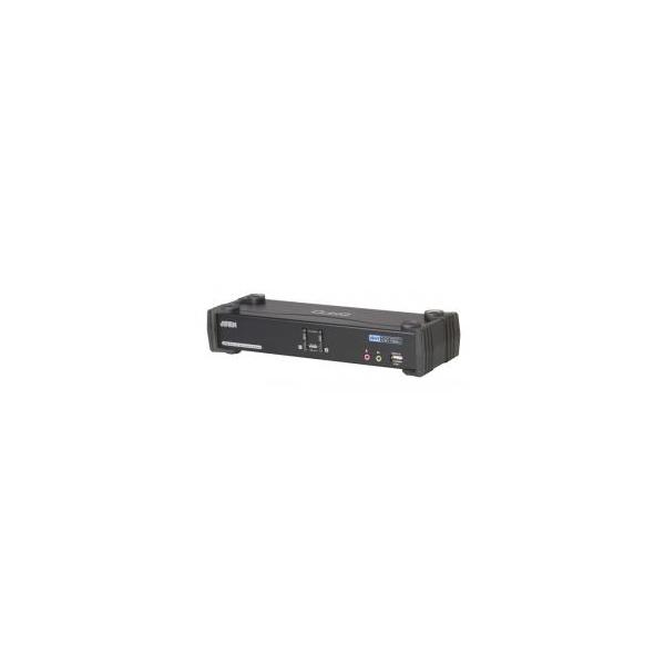 - ATEN 2ポートデュアルリンクDVI対応KVMPスイッチ【CS1782A】 2ポートUSB KVMPスイッチ CS1782Aは、USB2.0ハブを2ポート搭載し、デュアルリンクDVIインターフェースおよび7.1chサラウンドオーディオに対応した2ポートのUSB DVI KVMPスイッチです。 デュアルリンクDVI対応 マウスによるポート切替やキーボード言語レイアウトの変更が可能 コンソールキーボードにはゲーミングキーボードの使用も可能 ・USB2.0対応2ポートDVI KVMPスイッチ ・USBコンソール1箇所から2台のコンピューターと2台のUSBデバイスの操作が可能 ・USB2.0ハブポートを2ポート搭載 ・オーディオ対応 ‐ ベースレスポンスに優れた7.1chサラウンドオーディオ出力 ・ポート切替方法 - フロントパネルのプッシュボタン、ホットキー、USBマウス ・マルチプラットフォーム対応 - Windows、Linux、Mac、Sun ・KVM、USB、オーディオは個別切替に対応 ・DVI-DおよびDVI-A対応‐DVI仕様準拠 ・解像度 - 最大1,920×1,200@60Hz (シングルリンク)、2,560×1,600@60Hz (デュアルリンク) ・ワイド画面解像度対応 ・HDCP準拠 ・ビデオダイナシンク(ディスプレイエミュレーション) - コンソールモニターのEDIDを保存し、解像度を最適化 ・電源状態検知機能 - コンピューターの電源がOFFになると、電源が入っている方のコンピューターに自動切替 ・コンソールマウスポートエミュレーション、多機能マウス対応 ・コンソールキーボードエミュレーション、ゲーミングキーボード、マルチメディアキーボード対応 ・キーボードエミュレーション機能 - 選択されていないポートのコンピューターもエラーなく起動 ・Mac・Sunキーボードエミュレーション対応*多言語キーボードマッピング - 日本語、英語、フランス語の各キーボードに対応 ・オートスキャンモード - 製品に接続されたコンピューターを自動的に切替表示 ・ファームウェアアップグレード対応 * 1.PC/ATキーボードでもキーの組み合わせでSun/Macキーボードの特殊キー入力が可能 * 2.Mac・Sun用キーボードも使用可能です。(Windowsマシンでは特殊キーが効きません) 機能 CS1782A コンピューター接続数 2 コンソール接続数 1 コンピューター側対応インターフェース キーボード USB マウス コンソール側対応インターフェース キーボード USB マウス ポート選択方法 プッシュボタン、ホットキー、マウス コンピューター側コネクター キーボード/マウス USBタイプBメス×2 モニター DVI-Iメス×2 オーディオ ライン出力 ミニステレオジャック×2 ライン入力 ミニステレオジャック×2 マイク ミニステレオジャック×2 サイドスピーカー出力 ミニステレオジャック×2 リアスピーカー出力 ミニステレオジャック×2 センター/サブウーファー ミニステレオジャック×2 コンソール側コネクター キーボード USBタイプAメス×1 マウス USBタイプAメス×1 モニター DVI-Iメス×1 オーディオ ライン出力 ミニステレオジャック×2 ライン入力 ミニステレオジャック×1 マイク ミニステレオジャック×2 サイドスピーカー出力 ミニステレオジャック×1 リアスピーカー出力 ミニステレオジャック×1 センター/サブウーファー ミニステレオジャック×1 スイッチ ポート選択 プッシュボタン×2 USB2.0ハブ USBタイプAメス×2 電源ジャック DC電源ジャック×1 LED USBリンク グリーン×2 オンライン/選択ポート オレンジ×2 キーボード・マウスエミュレーション USB スキャンインターバル 1〜99秒(ユーザー設定)/5秒(デフォルト) 電源仕様(アダプタ) 型番:0AD8-0605-24EG入力:AC 100〜240V 50〜60Hz出力:DC5.3V / 2.4A 消費電力 9W 解像度 2,560×1,600 (デュアルリンク)1,920×1,200 (シングルリンク) 動作環境 動作温度 0〜50℃ 保管温度 -20〜60℃ 湿度 0〜80%RH、結露なきこと ケース材料 メタル 重量 900g サイズ (W×D×H) 270×87×55mm 同梱品 2L-7D02UD(1.8m)×27.1ch サラウンドサウンドケーブル×2電源アダプタ×1ユーザーマニュアル×1クイックスタートガイド×1