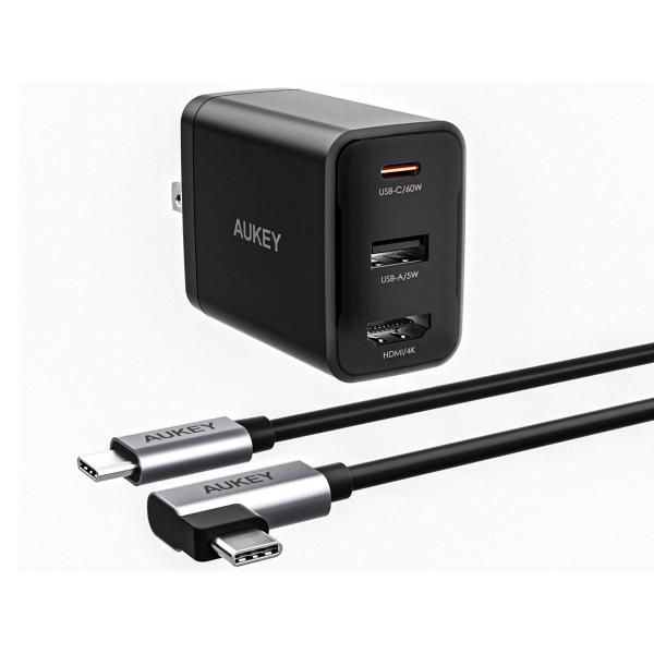 - メーカー希望小売価格はメーカーサイトに基づいて掲載しています この差は、オーキー。 AUKEY(オーキー)は、世界60ヵ国以上で販売される信頼のブランドです。 AUKEYの充電器『Swift HDMI 65W』はノートPCやゲーム機に給電しながらHDMI出力もできる多機能な小型USB充電器です。 本製品はPCやゲーム機の画面をテレビ、モニターなどに出力する事ができ、ビジネスやプライベートなど活躍の場はさまざまです。 Nintendo Switchドックのテレビモード機能とACアダプターの急速充電機能を兼ねて使用でき、Switchドックを持ち運ばなくても外出先や旅行先のテレビやモニターで大画面でゲームを楽しみながらSwitch本体を充電する事が可能です。 USB-CとUSB-AのデュアルUSB充電ポートを搭載し、2ポート同時使用時は最大60W(USB-C)+5W(USB-A)の出力で2台の機器への同時給電が可能です。USB-Cポートは60Wの高出力に対応し、MacBookへの急速充電が可能です。 次世代パワー半導体素材「GaN(窒化ガリウム)」を採用しているのでエネルギー効率に優れ、高出力かつ小型軽量を実現しました。 折りたたみ式プラグ搭載で収納・持ち運びに便利です。 付属品の映像出力対応ケーブルは、USB 3.2 Gen2を搭載し最大データ転送速度 10Gbpsに対応しています。また最大出力100W(20V 5A)の高出力に対応しています。 [映像出力に対応] PCやNintendo Switchの画面をテレビ、モニターなどの大画面に出力する事ができます。ビジネスでもプライベートでも、多岐にわたって活用していただけます。Nintendo Switchドックのテレビモード機能とACアダプターの急速充電機能を備え、Switchドックの代わりに外出先や旅行先に携帯してテレビやモニターで大画面でゲームを楽しみながらSwitch本体を充電する事ができ、とても便利です。 [デュアルUSB充電ポートを搭載] USB-CとUSB-AのデュアルUSB充電ポートを搭載し、2ポート同時使用時は最大60W(USB-C)+5W(USB-A)の出力で2台の機器への同時給電が可能です。USB-Cポートは60Wの高出力に対応し、MacBookへの急速充電が可能です。 [コンパクト設計かつ高性能] 次世代パワー半導体素材「GaN(窒化ガリウム)」を採用しているのでエネルギー効率に優れ、高出力かつ小型軽量を実現しました。また、折りたたみ式プラグを搭載し、収納・持ち運びに便利です。 [高性能ケーブルを付属] 付属品のケーブルは映像出力に対応しています。USB 3.2 Gen2を搭載し最大データ転送速度 10Gbpsに対応、また最大出力100W(20V 5A)の高出力に対応しています。 [ご購入前にお読み下さい] ※急速充電を行う際は、ご使用の機器とケーブルがPD規格に対応していることをお確かめください。(機器やケーブルの入力可能値に対応した出力で充電が行われます。) (本製品に付属しているケーブルはPD対応です。) ※本製品のポート形状は【USB-C】【USB-A】【HDMI】です。ご使用のケーブルのコネクタ形状をお確かめの上ご購入をお願いいたします。 ※端末への充電を行う場合、USB Power Delivery (USB PD)対応の機種であっても、モデルやスペック、OSによっては必要電力量、その他の環境によって正常に動作しない可能性がございます。ご使用の機器の仕様やUSB充電器との互換性につきましては、各機器メーカーにご確認頂きますようお願い申し上げます。 ※映像の出力には、映像出力に対応したUSB-Cポート搭載パソコンをご使用ください。USB-Cポートの映像出力の可否につきましては、ご使用のパソコンメーカーにお問い合わせください。 ※当製品は、モバイルバッテリーへの充電にはご使用になれません。 ※製品付属ケーブル単体での販売はございません。 充電器 製品仕様 テクノロジー PD3.0 入力 AC 100-240V~1.5A 50/60Hz USB-C 出力 (PD3.0) 5V-3A / 9V-3A / 12V-3A / 15V-3A / 20V-3A (60W Max) USB-A 出力 5V-1A (5W Max) 合計最大出力 65W Max (C 60W + A 5W) 本体サイズ 約60×49×31mm 本体重量 約120g ケーブル 製品仕様 テクノロジー USB3.2 Gen2 コネクタタイプ USB-C to USB-C 最大出力 100W (20V 5A) 最大転送速度 10Gbps 材質 アルミニウム合金+TPE カラー ブラック コード長さ 1m 重量 約29g パッケージ内容 本体、USB-C to Cケーブル、取扱説明書、保証書 パッケージサイズ 約108x170x32mm