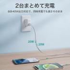 AUKEY USB充電器 typeC 2ポート PD3.0 急速充電 折りたたみ式プラグ iPhoneシリーズ対応 単ポート最大20W 合計40W Android PA-R2S オーキー 爆買