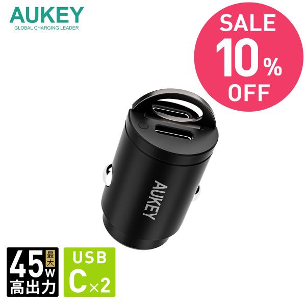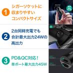 10/14 20:00-10/16 23:59 期間限定特別価格 シガーソケット カーチャージャー USB-C 急速充電 iPhone Android PD3.0 QC3.0 AUKEY Rapide Duo 45W CC-A4S-BK