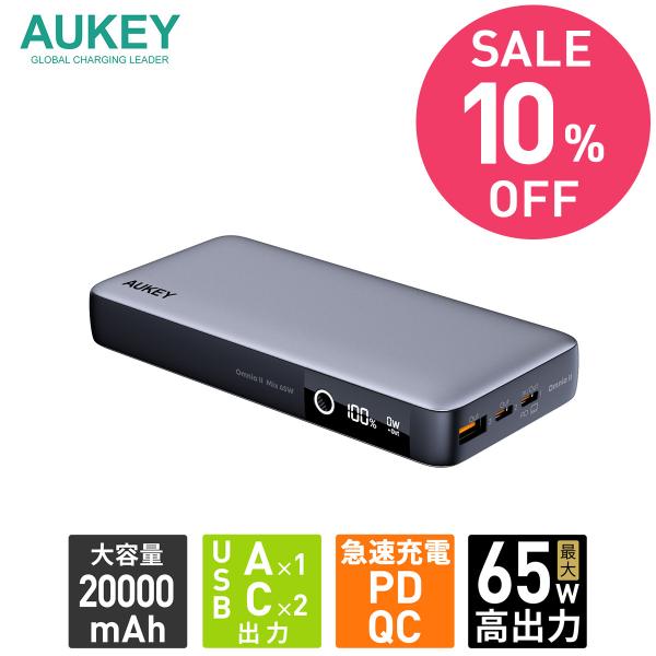 【期間限定セール】AUKEY Metallic モバイルバッテリー 20000mAh 大容量 65W 3ポート PD QC 急速充電 3台同時充電 typeC typeA ノートPC PB-Y43-GY オーキー
