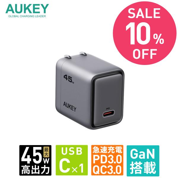 【期間限定セール】AUKEY Metallic USB充電器 45W type-C PD3.0 急速充電 折りたたみ式プラグ ACアダプター MacBook ノートPC タブレットPC PA-C2 オーキー