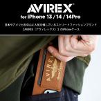 スマホケース iPhone14Pro iPhone14 iPhone13 ケース AVIREX アヴィレックス 耐衝撃 カード収納 カラビナ付 刺繍 ケース avirex アビレックス