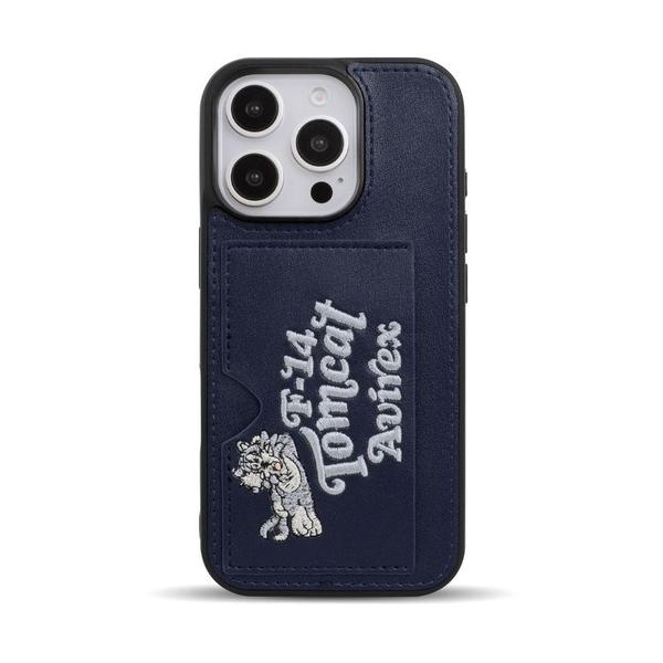 エム・ディー・シー iPhone 16 Pro AVIREX [ポケット付き背面ケース/刺繍/ネイビー] MD-75564-3