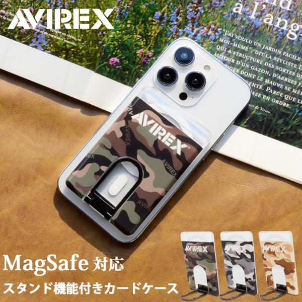 MagSafe カードケース AVIREX アヴィレックス 迷彩柄 マグセーフ ケース magsafeカードケース カード収納 マグネット キャッシュレス ブランド スマホスタンド