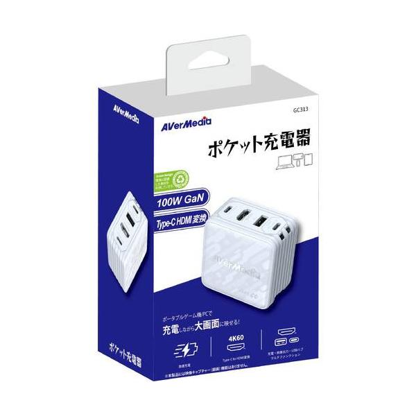 - AVerMedia Live GENERATOR POCKET ポケット充電器 ホワイト GC313WH DV0962 DV0962 日本正規代理店製品 保証1年 PD3.0急速充電対応により、デバイスを素早く効率的に充電できます。幅広い機器に対応し、安全かつ安定した充電環境を提供します。 USB-Cポート2基とUSB-Aポート1基を搭載し、最大3台のデバイスを同時に充電可能です。省スペース設計で、複数の充電器を必要としません。 GaN技術により、高出力(最大100W)ながらも小型設計を実現。発熱を抑え、効率的な電力供給が可能です。 HDMIポートを使用し、4K解像度・60Hzの高精細映像を外部ディスプレイに出力可能です。ゲームやプレゼンテーションで優れた視覚体験を提供します。 ポータブルゲーム機に最適な充電ドック兼接続ハブです。HDMI出力で最大4K60の映像表示に対応し、プレイ中の充電が可能。USB-C×2、USB-A×1搭載で、多様なデバイス接続にも対応します。 ■カラー:ホワイト ■入力電源:AC 100-240V 50/60Hz ■USB-C1/C2出力:5V/3A 9V/3A 12V/3A 15V/3A 20V/5A ■USB-A出力:5V/1A ■充電規格:PD3.0対応 ■最大出力:100W ■最大解像度:4K60Hz ■ポート構成:USB Type-C×2、USB Type-A×1、HDMI 2.0×1 ■保護機能:短絡保護、過電流保護、過電圧保護、過熱保護 ■本体サイズ:66×36.6×62mm ■付属品:USB Type-C to Type-Cケーブル、クイックスタートガイド 商品コード39077424179商品名AVerMedia Live GENERATOR POCKET ポケット充電器 ホワイト GC313WH DV0962型番GC313WHカラーホワイト※他モールでも併売しているため、タイミングによって在庫切れの可能性がございます。その際は、別途ご連絡させていただきます。※他モールでも併売しているため、タイミングによって在庫切れの可能性がございます。その際は、別途ご連絡させていただきます。