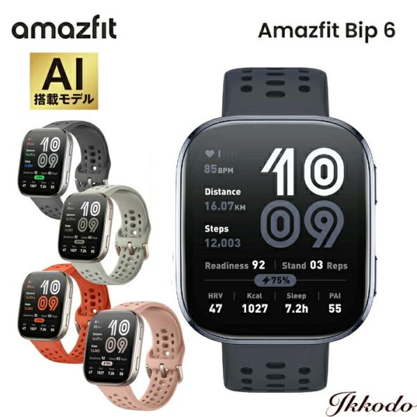 アマズフィット Amazfit ビップ6 Bip6 スマートウォッチ 大画面 通話機能 GPS 健康管理 ブラック チャコール ストーン レッド ブラッシュ SP170074