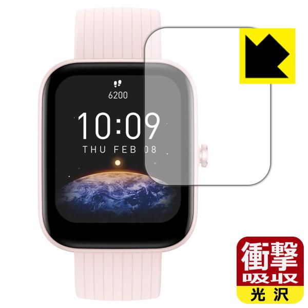 Amazfit Bip 3 / Bip 3 Pro対応 衝撃吸収[光沢] 保護 フィルム 耐衝撃 日本製