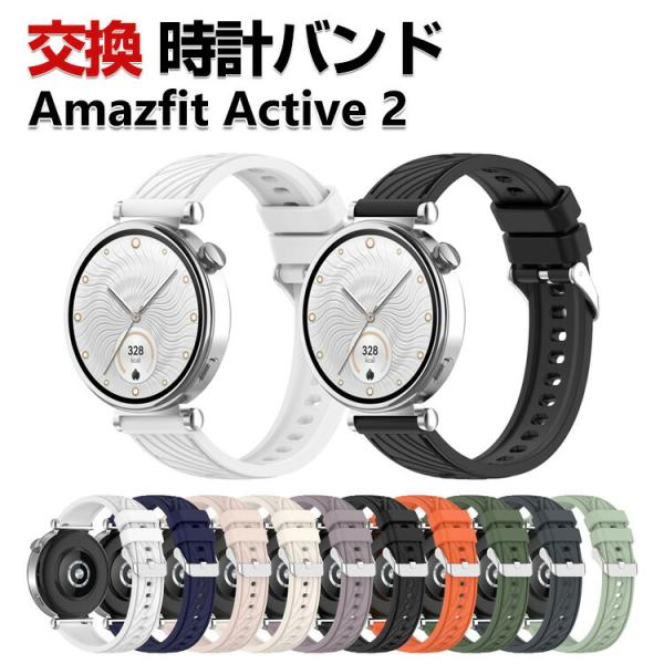 Amazfit Active 2 交換 バンド シリコン素材 おしゃれ スポーツ ベルト 替えベルト 綺麗な マルチカラー 簡単装着 人気 幅20mm 腕時計バンド 交換ベルト
