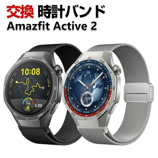 Amazfit Active 2 バンド オシャレな 高級ステンレス 腕時計ベルト 替えベルト 磁気吸着 調節可能 簡単装着 人気 幅20mm 腕時計バンド 交換ベルト