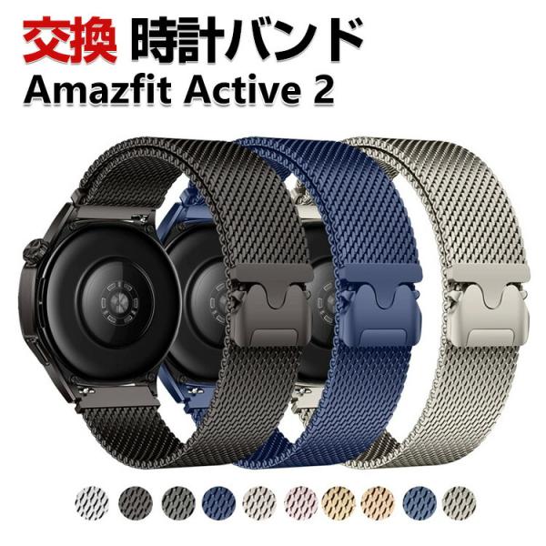 Amazfit Active 2 バンド オシャレな 高級ステンレス 腕時計ベルト 替えベルト 磁気吸着 調節可能 簡単装着 人気 幅20mm 腕時計バンド 交換ベルト