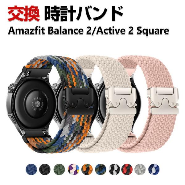 Amazfit Balance 2 Active 2 Square 交換 バンド ナイロン素材 スポーツ ベルト 替えベルト 簡単装着 人気 磁気吸着 調節可能 腕時計バンド 交換ベルト