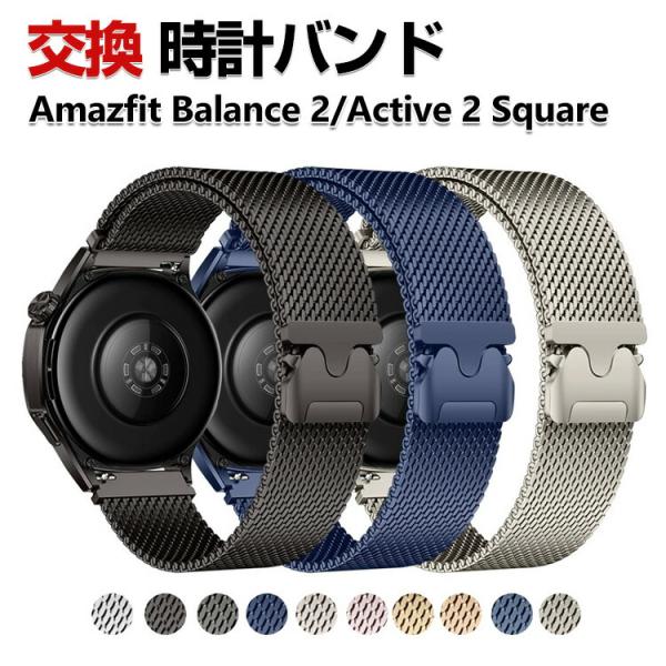 Amazfit Balance 2 Active 2 Square バンド オシャレな 高級ステンレス 磁気吸着 調節可能 簡単装着 人気 おすすめ おしゃれ 腕時計バンド 交換ベルト