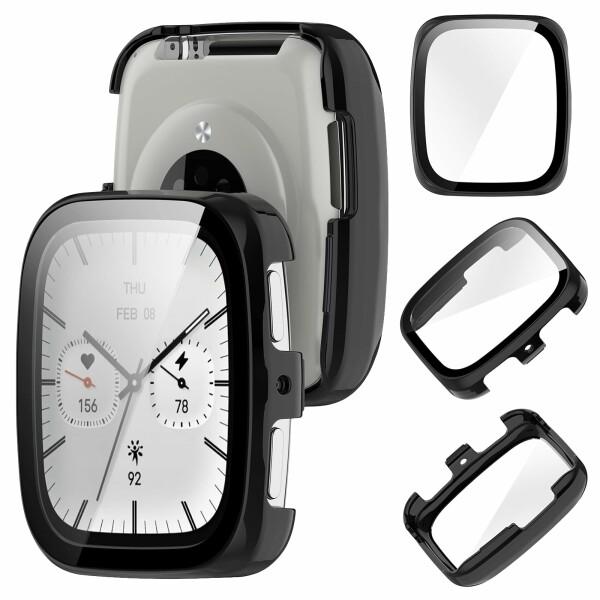 For Amazfit Active 2 Square 用 ケース PC素材+強化ガラスフィルム 一体型 軽量 薄型 飛散防止 保護カバー 耐衝撃 高透過率 傷防止 全面保護 スマートウォッチ active 2 square 保護ケース(ブラック)
